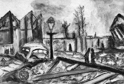 Mijn interesse in Rotterdam voor- en na de Tweede Wereldoorlog heb ik in kaart gebracht door een serie aquarellen, gesso/ houtskool tekeningen en olieverf schilderijen te maken.